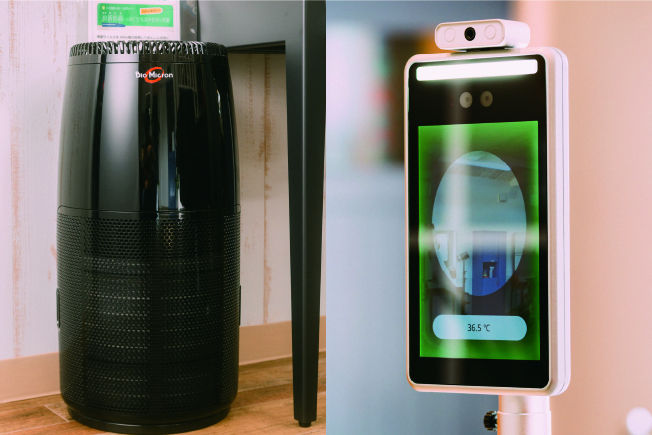 4.ウィルス対策として、新幹線、海ほたる、羽田空港でも使用の技術を搭載した99%ウィルス除去する高性能の空気清浄機を稼働しています。